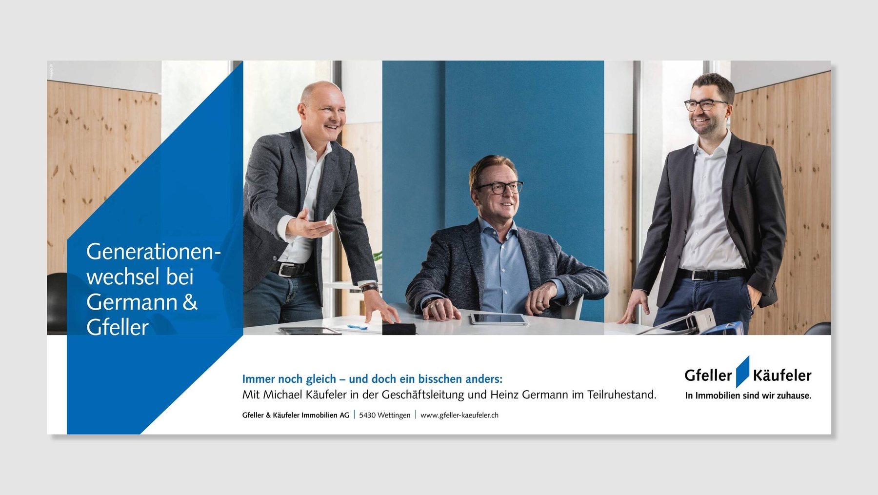 Immer noch gleich und doch ein bisschen anders: Michael Käufeler tritt in die Fussstapfen von Heinz Germann. Germann & Gfeller heisst neu Gfeller & Käufeler. Dies wird gezielt mittels On- und Offlinemedien kommuniziert. Zum Anlass gibt es ein Logo Refresh sowie eine neue Website.