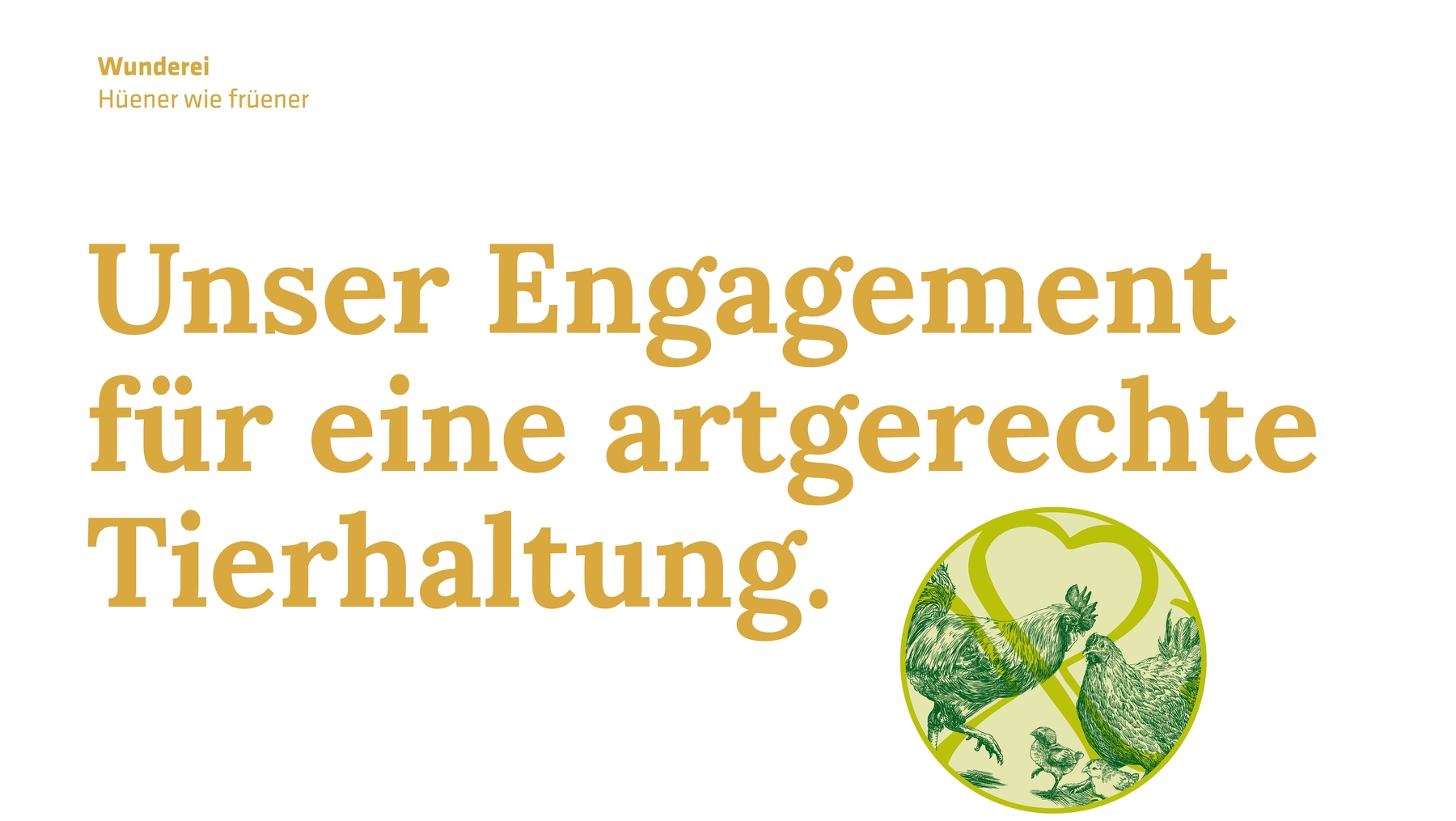 Die Synergie zwischen nachhaltiger Tierhaltung und anwenderfreundlichem Online-Shop für den Endkonsumenten werden in einer geschickten Balance von nützlichen Informationen, freundlicher Bildsprache und technischer Funktionalität wiedergegeben. Die neue Marke «Wunderei» mit glücklichen «Hüener wie früener» bringt dem Kunden den Eierkauf aus ethischer Tierhaltung nahe – und die Lieferung erfolgt direkt vor die Haustür.