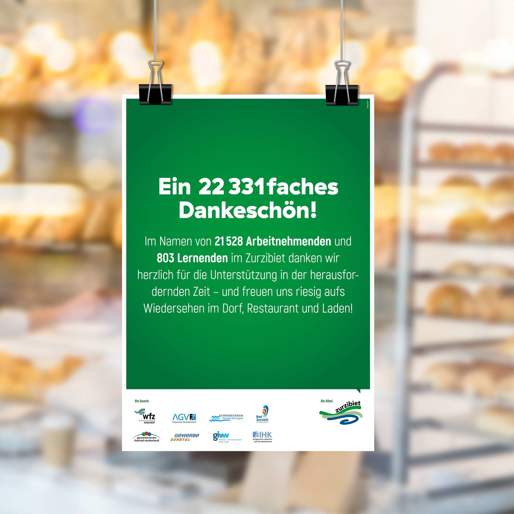 Mit einer Sympathiekampagne wollte das WFZ der Bevölkerung für die Unterstützung des lokalen Gewerbes während der Krise danken. Und gleichzeitig dazu inspirieren, die regionalen Gewerbetreibenden auch im normalen Alltag vermehrt zu berücksichtigen.
